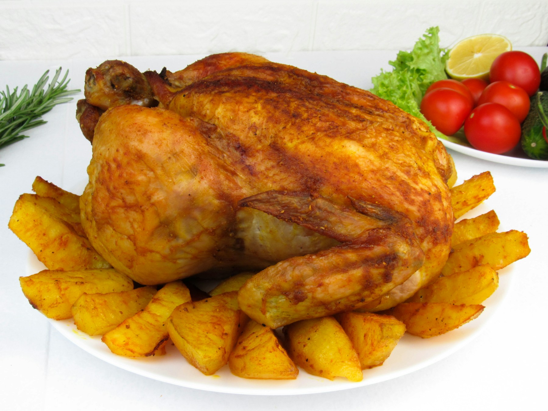 - Search content: a roasted turkey and potatoes on a white plate. Baked chicken with potatoes . dinner, chicken, vegetables